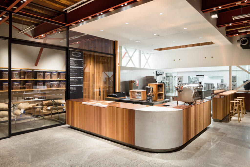 サンフランシスコのちょっと北側の、太平洋からの風を強く受ける崖っぷちにシーランチという、1960年、70年代に建築家が開発した建物群があるんです。風を直接受けるんじゃなくて流しちゃうとか、外壁はどんどん朽ちていくけれど、その様がいいだろうっていう考え方でつくっていて。それがめちゃめちゃかっこよくて、学生のときにものすごく衝撃を受けたんです。あれもレッドシダーなんじゃないかな。サンフランシスコから来るダンデライオン・チョコレートに対して、使いたいなと思ったんですよ。